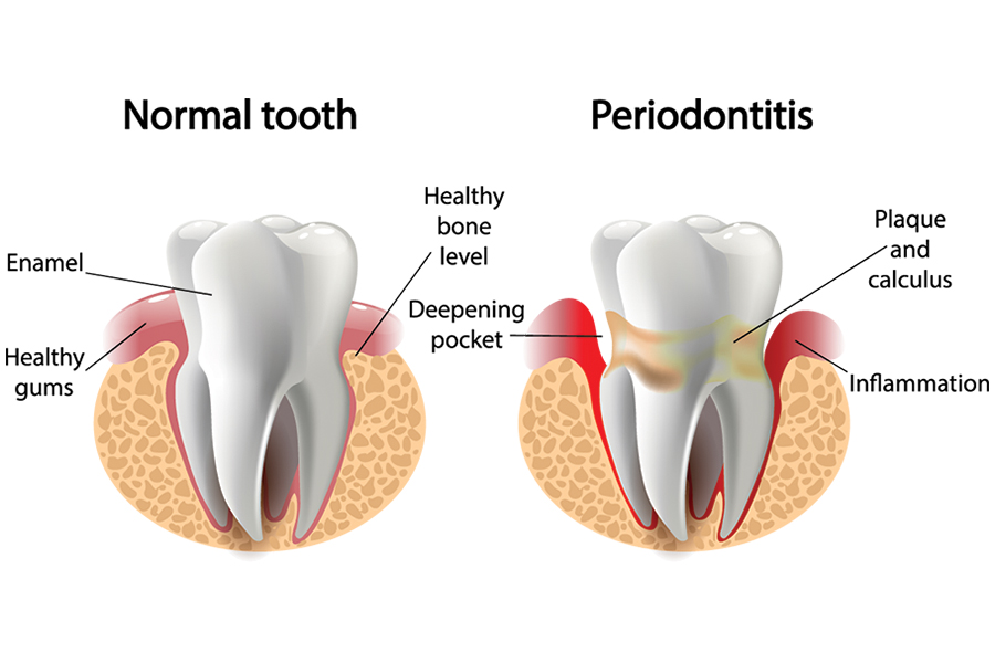 Bệnh nha chu làm phá hủy các mô nâng đỡ răng, làm tiêu xương ổ răng, lệch răng, lung lay răng.